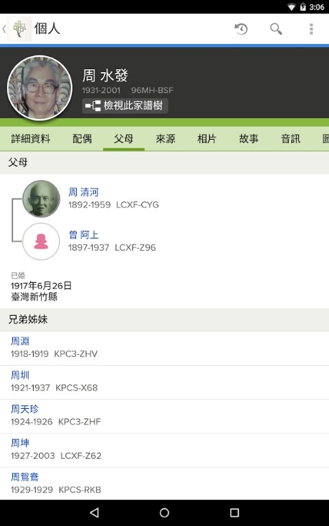 家谱树——检视、加入和编辑关於你祖先的资料。加入相片、故事和文件来丰富你的家谱。