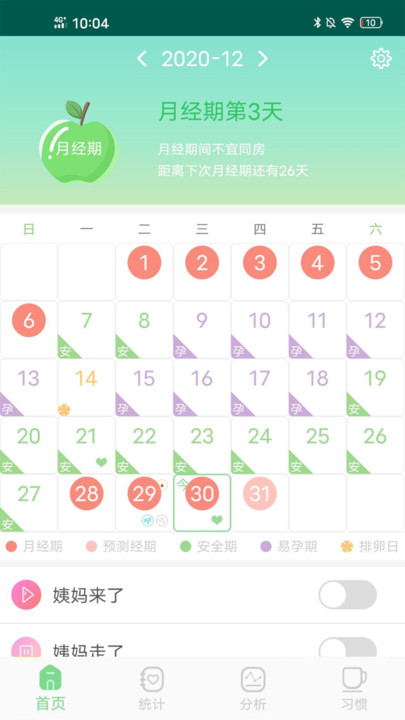 ·在大姨妈来临前的温馨提醒,预测排卵期/安全期,易孕期、排卵日,您都需要