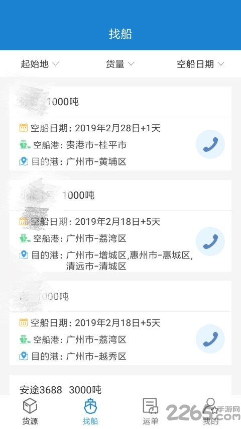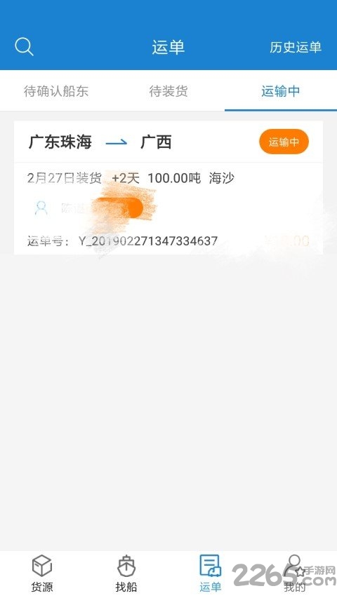 为货主的运输保驾护航,为2265船东降低空载提高收入。