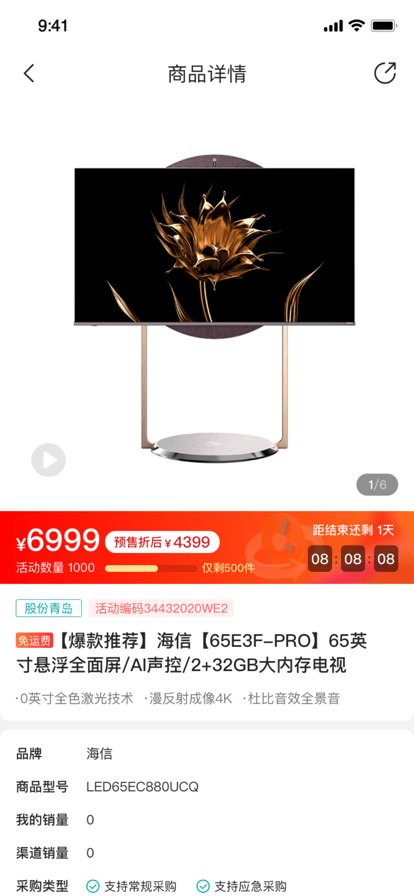海信信天翁app官方版是一个好用的针对海信经销商打造的软件,大家可以利用这款手机app更好的进行海信相关产品的采购,能够在这里直接的拿到官方渠道的合作价格,让大家获得最好的服务,赶紧来试试吧。