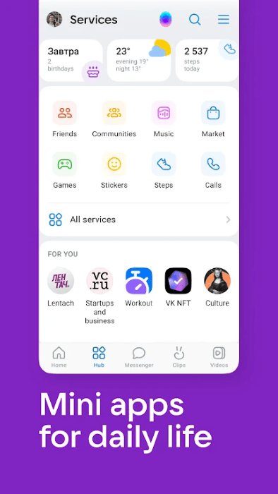 vk手机版通过提供来自世界各地的无限通信、娱乐、商业和分享新闻的功能,将数以千万计的人们团结在一起。在该应用程序上,您可以听音乐、观看视频和剪辑、跟踪您的健康状况、玩游戏和购物。与朋友和家人保持联系。将无限数量的人聚集在一起进行视频通话,全部免费,没有时间限制。在messenger中,您可以通过群聊和私人消息与vk上的朋友以及手机联系人中的人聊天。
