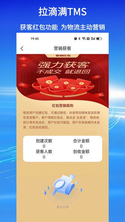 拉滴满tms是款专门为开单员.司机.会计.老板打造的物流配货app,强大的功能随机可去满足到用户的需求,能够让你在开单界面上会有这一系列便捷的方式处理着,有客户管理.财务报表.员工管理等一目了然,简介的开单界面,手机电脑都可同步,让你在完成运输的时候更加轻松些哟,快来下载的使用吧。