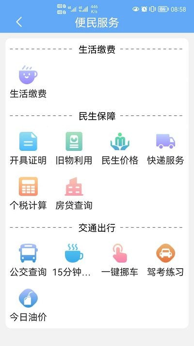 --交通服务:城际公交购票、实时公交、扫码乘车等;