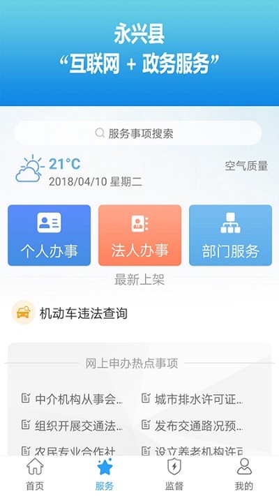 软件是由永兴县政府打造的,采用了互联网+政务服务的模式,在这里拥有各种政府信息公开、互动交流、互联网+监督、互联网+政务服务等,旨在向着标准化、便捷化、多元化的新型综合服务方向而努力!