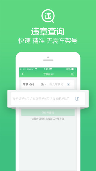 7、车辆违章查询:直达官方数据源,输入身份证、发动机后4位或车架号后6位就可轻松查询违章。快!准!狠!
