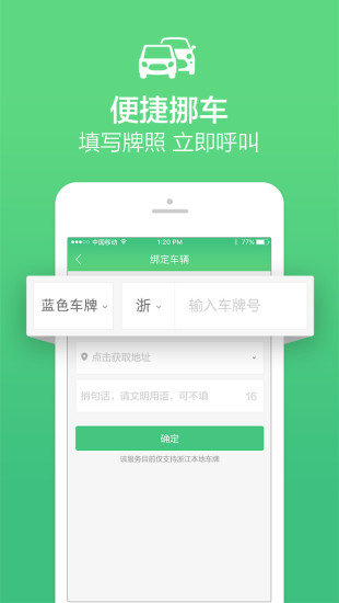 3、一键挪车:方便快捷,保护隐私,再也不用在车头留电话了,微信公众号、APP客户端内3步直接挪车。
