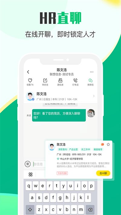 【视频面试】在线直聊、视频面试,系统主动邀约人才,让招聘更简单