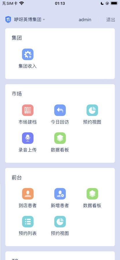 前台:为口腔从业前台人员提供快速挂号、患者建档、数据看板等功能;