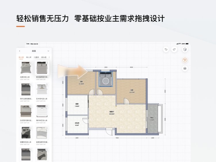 销售随时随地用pad呈现给业主,无压力按要求调整设计