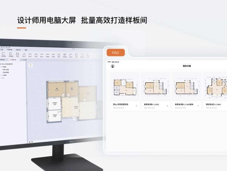 多端协作:支持电脑、pad和手机,多角色协作:支持设计师、门店销售等