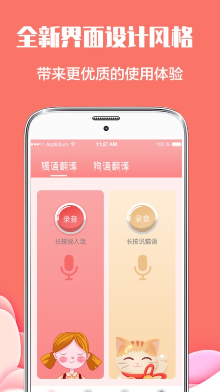 长按录人声:输入你想对爱宠说的话,立马转化成宠物语言,宠物能听懂你想说的话;