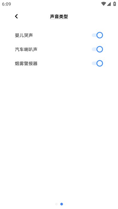 2.在“声音类型”中开启“婴儿哭声”即可,手机将持续监测婴儿哭声