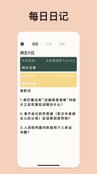 新增日记页”今日完成“能记录日程中的事项,能更好的复盘一天做了什么
