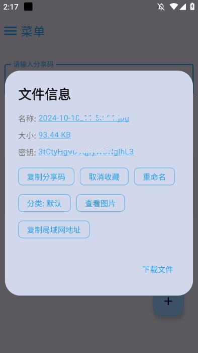 分享码中包含了,文件地址,文件大小,加密使用的密钥等信息