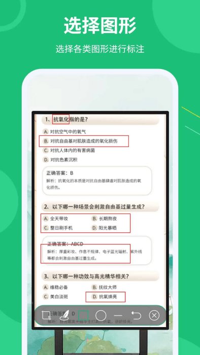 1、丰富的标注工具:app提供了丰富的标注工具,包括文字、线条、形状、图片等。用户可以根据需要选择不同的工具进行标注和涂鸦。