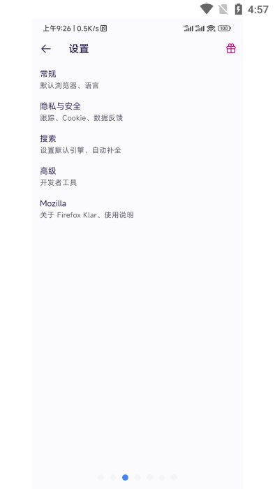 firefox klar浏览器app是德语版的火狐浏览器,主要是在德国、瑞士、澳大利亚地区专用的,功能与全球版的一下,都是以隐私保护为主,还能帮你屏蔽广告,很多的功能基本上都是一样的,一起来看看下载吧!