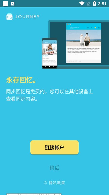 旨在永久保存您的记忆。此应用中,您可以将日志篇目保存至自己的Google Drive 谷歌硬盘以及Markdown(非所有权的文档格式),从而掌握对日志的完整控制权。您甚至可以离开应用程序,直接在网页上(Journey.Cloud)访问日志!
