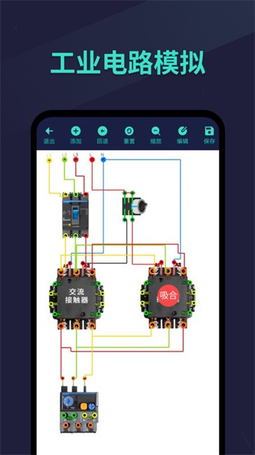 电工仿真接线模拟器一款专为电工电力专业学生打造的高效电路模拟接线的仿真软件。支持多种元器件:灯泡,开关、交流接触器、热继电器、中间继电器、电机等。