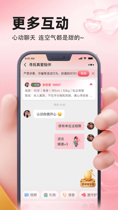 2.真人认证:平台严格审核,用户真人认证,严禁机器人聊天,信息真实可靠,拒绝照骗。