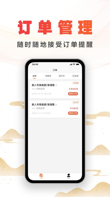 为上门提供服务的技师提供接单信息、时间管理、订单管理、流水管理、营销管理等功能。