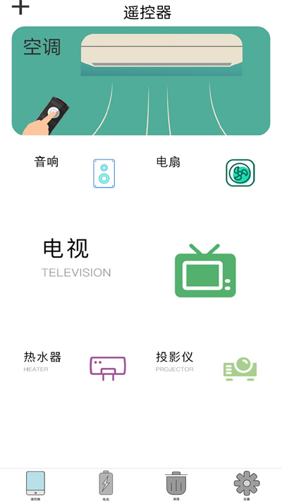 ·集电视遥控、空调遥控、机顶盒遥控、扫地机器人遥控、灯具遥控、电扇遥控、空气净化器遥控、投影仪遥控、热水器遥控等13种家电于一体的家居智能关怀软件