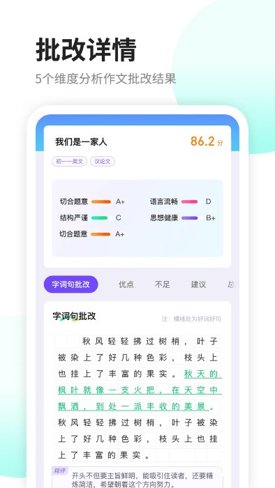 叮叮作文满足于用户们作业批改功能,作文评分、作文批改和作文讲解的作文辅导软件,拥有强大的作文素材和满分高考作文范文。