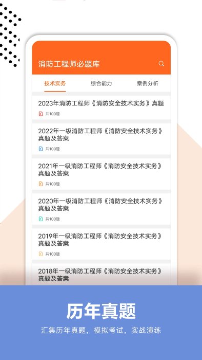 包含消防工程师近几年的考试真题,还原真实考试现场,掌握考试命题走向,熟悉真题出题方式,熟练应用解题技巧。
