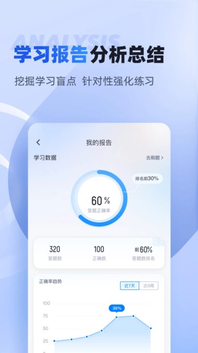 保安员题库内含考点练习,全国通用卷以及地区卷模拟练习,以及按照固定考试比重的随机式的抽题的真题考场,成绩单实时记录考试数据,一点一滴的反馈考生近期学习状态以及自我正确率的提升,给予考生通过考试的信心。