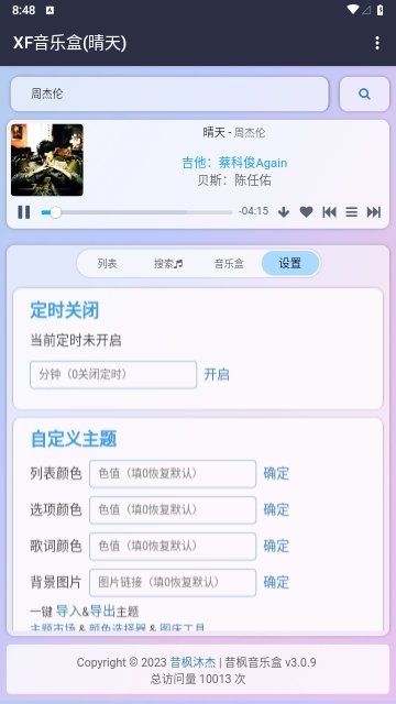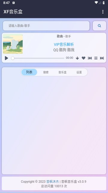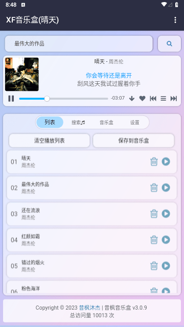 海量音乐:昔枫音乐盒提供海量音乐资源,包括国内外的流行歌曲、经典老歌、网络热门歌曲等。