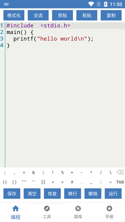 本地编译,无需网络,提供多种编译器内核和编译控制台,让没有计算机的同学们也能随时随地运行c语言小程序。