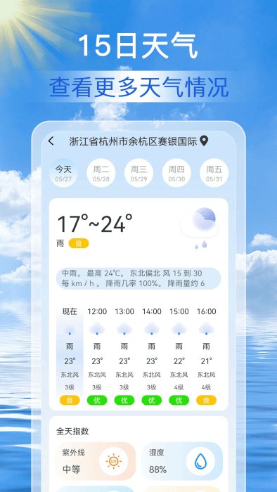 天气中的实时生活指数是必不可少的,提供的数据很实用。