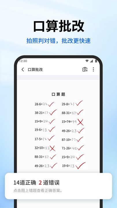 6.提供口算批改功能,轻松解决老师批改大量计算题的繁琐工作,节省时间和精力。