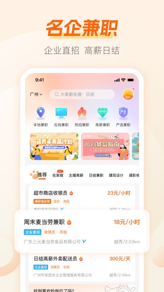 兼职猫是由广州九尾信息科技有限公司推出的互联网一站式兼职服务平台,围绕企业与个人需求,提供精准匹配的灵活用工服务,为求职者提供安全可靠的零工兼职岗位,有效为企业节省用人成本。兼职猫面世于2013年10月,是一站式企业灵活用工平台。平台汇集海量灵活用工岗位信息,依托大数据与智能分析功能,为用户提供安全靠谱的岗位。平台为企业用户提供平台免费招聘、线下代招、企业用工管理等灵活用工服务,覆盖零售、餐饮、房产、教育、金融、旅游等数十个行业,助力企业用工灵活高效,降低用人成本。