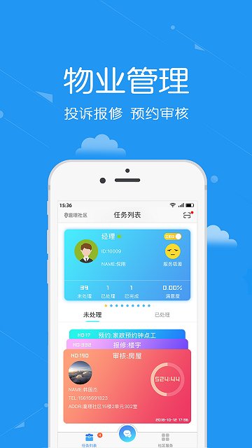 1、可实时查看小区2265业主的信息,在线处理业主问题。