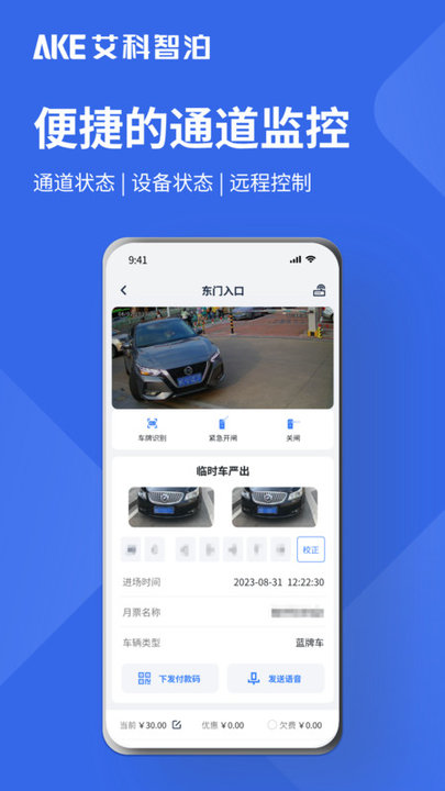 艾联客停车app针对车场运维人员,若出现车辆无法出入场或车辆识别抬闸超时等通道异常情况,第一时间赶及现场进行应急处理难度较大。
