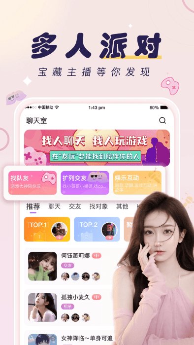 一起玩才好玩,男神女神任你挑选,趣味搭讪遇见爱,邂逅爱情秒脱单,一键搭讪开启你的小浪漫,一键下单开启的小分队。