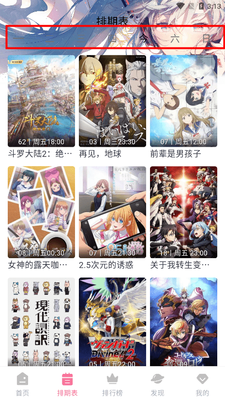2、首页下方的排期表,能看到周一、周二、周三、周四、周五、周六和周日每天更新的资源;