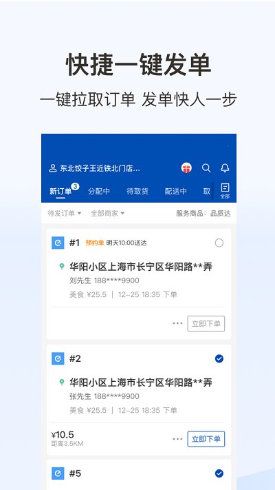 非常方便的配送服务平台,软件专注为商户打造,在这里商户朋友可以更加轻松的处理店铺的各种订单,在线一键呼叫骑手,更快速的店铺配送,让用户更加的舒心,给你带来极大的便利,感兴趣的不要错过了!