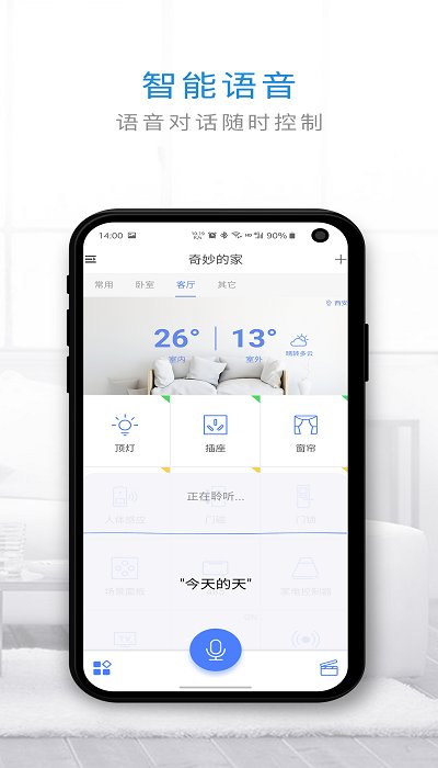 手机和手表端发出语音指令实时控制家中各种电器灯光设备,根据用户的个人习惯为其实现贴心智能便利,轻松地控制家居设备,设置工作模式,开启智能便利的家居生活,