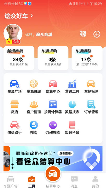 为二手车市场管理赋能,提高市场车源管控效率;为检测机构赋能,通过功能应用提升检测的公信力,覆盖更多用户层面。途众好车APP秉持诚信、专业、全面、便捷、高效的开发理念,为广大二手车商、二手车市场及车辆检测机构提供多元化服务:为车商提供个性化的门店管理功能、丰富的车源管理功能及精准的车辆获取功能;