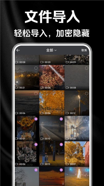 对重要.私密.涉及隐私的视频进行加密上锁,支持手势密码解锁,只需要设置一个专属密码,保存在这里的视频就不会泄露。