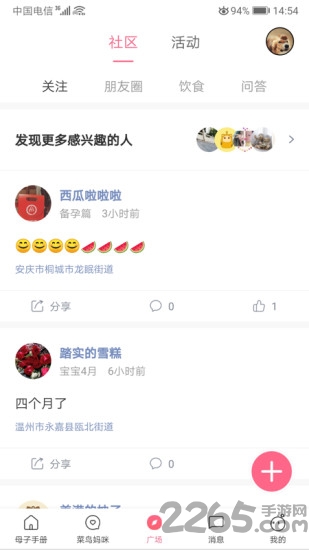 3.社交圈添加了好友关注,添加了孕妇问答模块和个人主页。