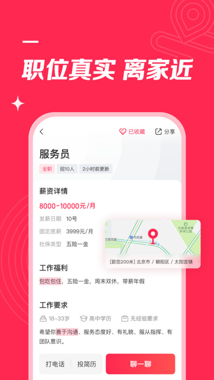 【职位真,离家近】严格的职位审核机制保证职位更真实,基于定位推荐附近的职位