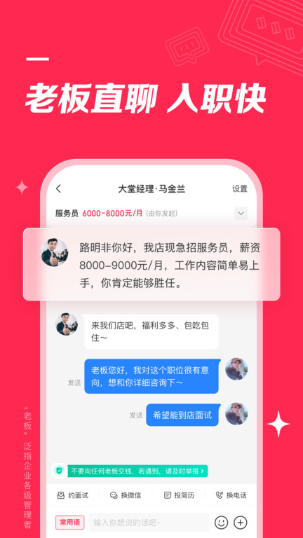 ·【求职更安心】与店长随时随地开聊,不用担心假职位、黑中介