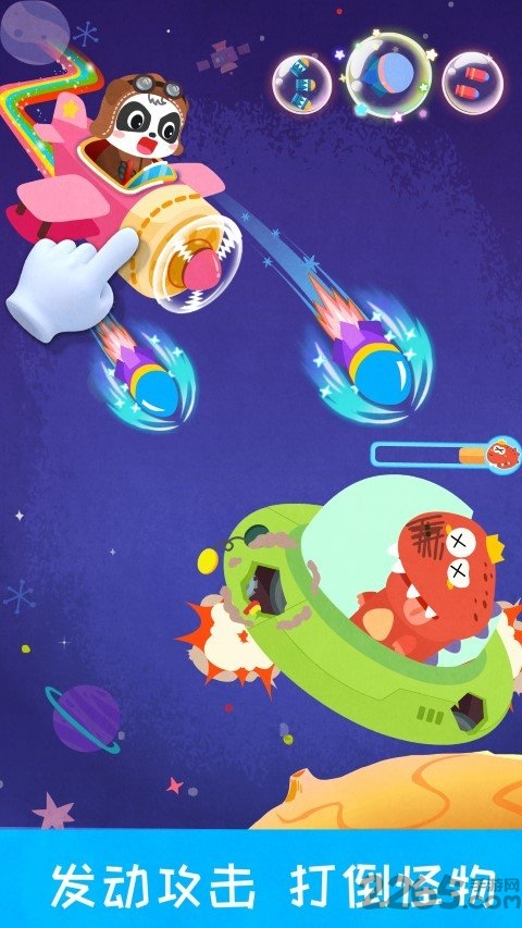 灵活飞行,瞄准大魔王,弹仓里的火箭弹,穿甲弹,热感导弹,操纵飞机射击!(训练儿童反应能力。)