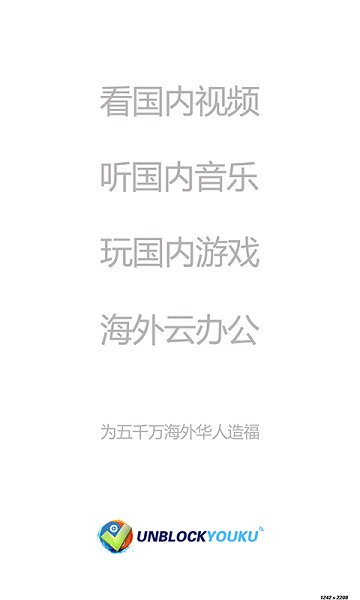 UNBLOCKYOUKU是专为海外华人开发的看国内视频、听国内音乐、玩国内游戏、用迅雷下载的网络解锁软件。