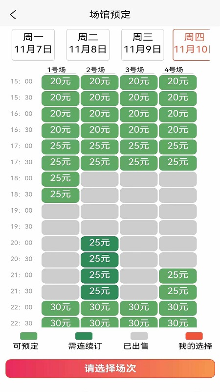 通过直连各球馆本地管理系统,拥有实时数据。可以像在线电影订票系统一样选馆选场地。