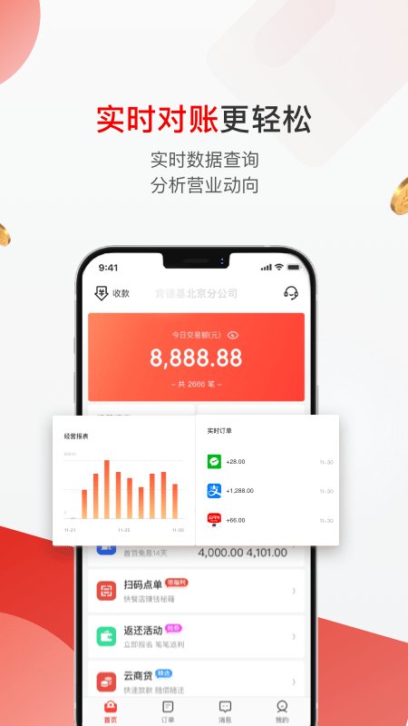 为线下商户提供“智慧支付及营销”解决方案的应用。采用自主研发的软件和硬件,专为餐饮、商超等消费场景设计,提供聚合收银、账单管理等功能,让商户收好钱、管好钱,助推商户销售额增长!