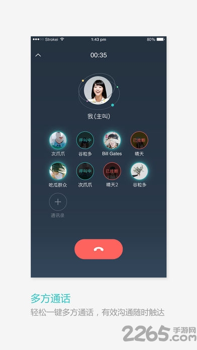 2.支持音、视频通话自由切换,支持通话过程中可发多媒体消息。多方通话自动组建群聊,群聊中也可以一键发起多方通话(最高6人),让沟通更高效!