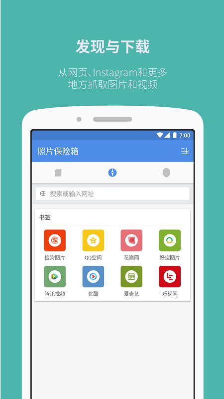 -- 内嵌私密浏览器,一键下载网页上的所有照片和视频